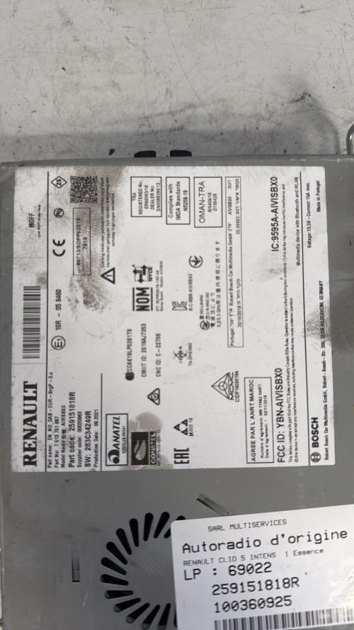 Autoradio d’origine RENAULT CLIO 5 PHASE 1 Essence
